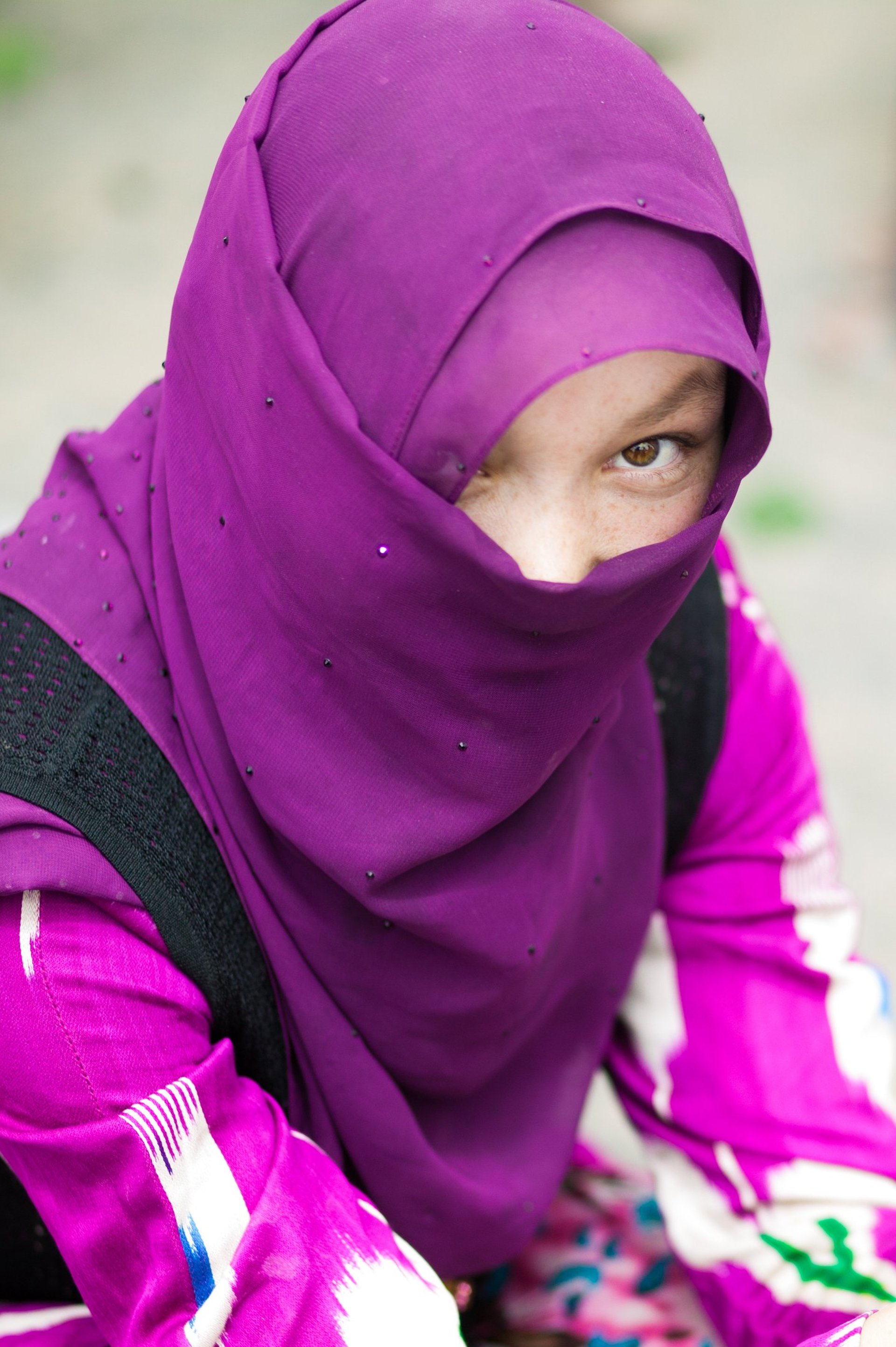 Above, you can see the original image the t-shirt is based on (the closeup portrait of the woman in purple). I took this image of a Uyghur woman in Xinjiang, China in 2013.