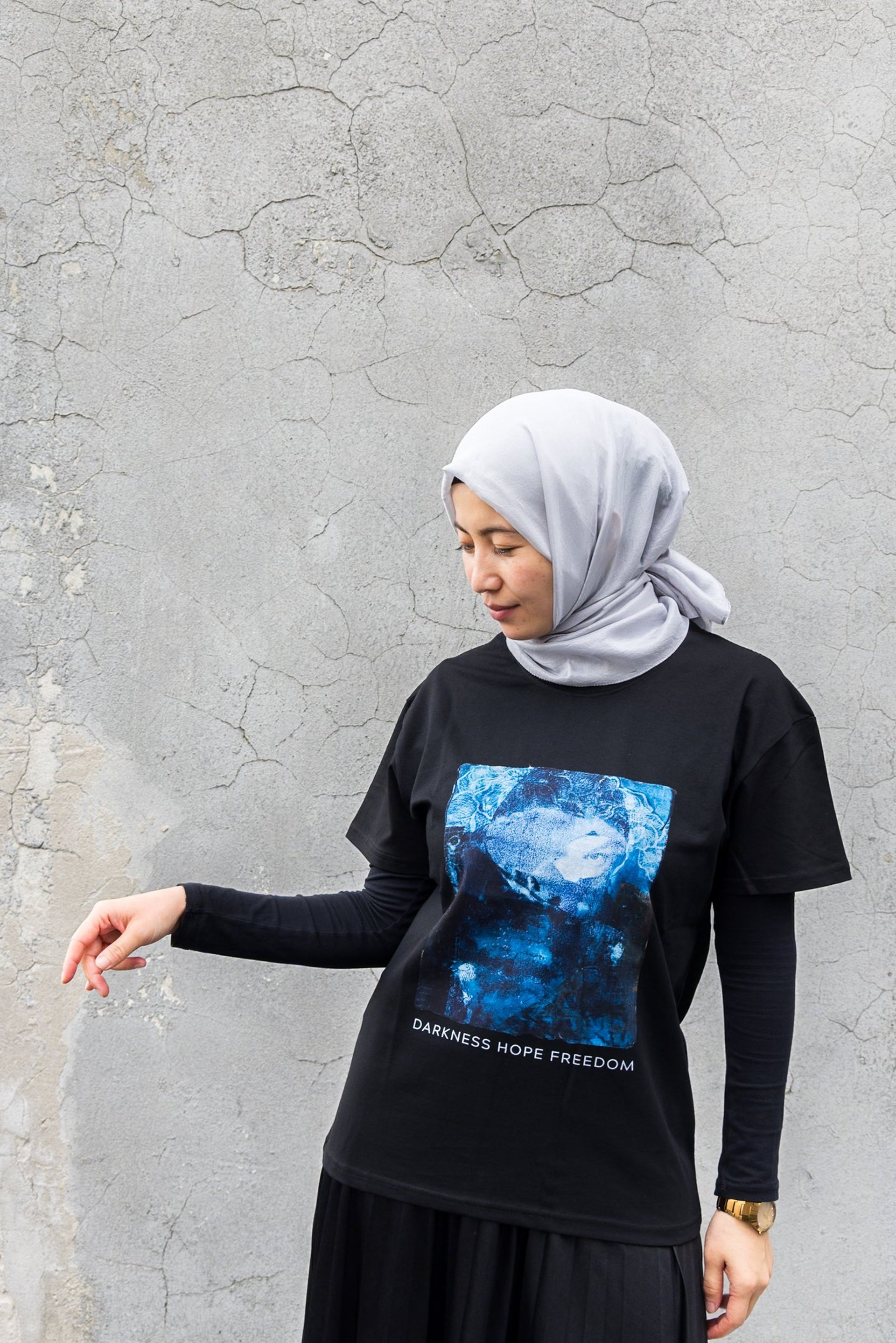 I then asked some Uyghur women if they would model the shirts for me. Many said no because of ongoing fears of repercussions to their families back in their homeland if they are perceived as speaking out against the government. Others agreed to be photographed if we hid their identities. Others were willing to show their faces and said they were done being afraid.